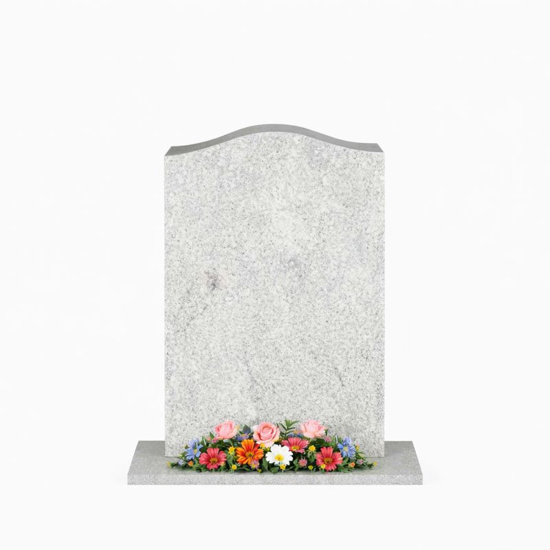 Helpolert gravstein med opphøyd bue i blå gneis.